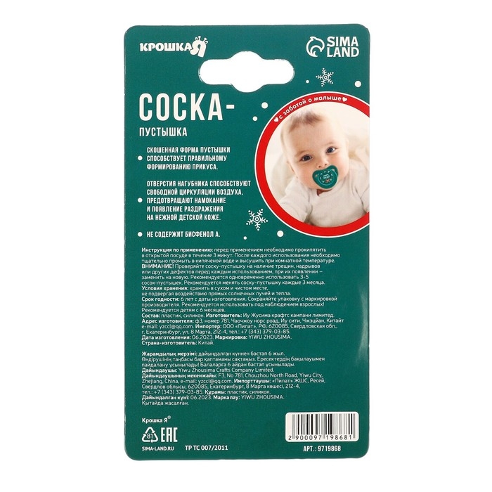 Соска - пустышка «Наше чудо», ортодонтическая, силикон, +6 мес., новогодняя подарочная упаковка, Крошка Я