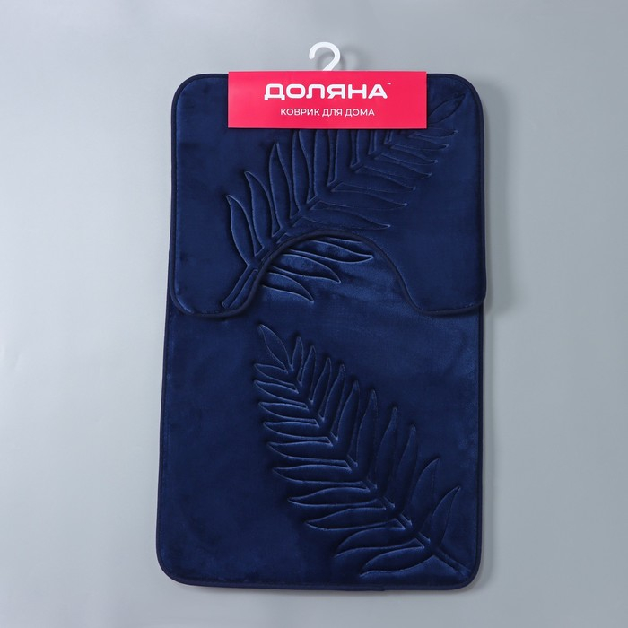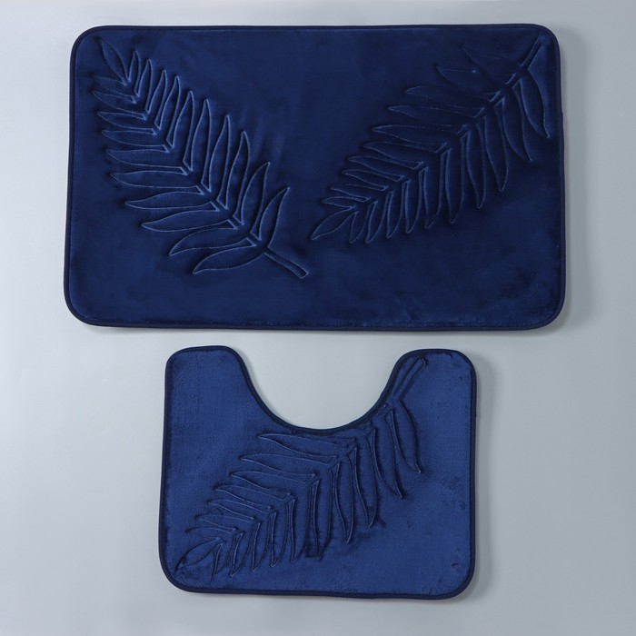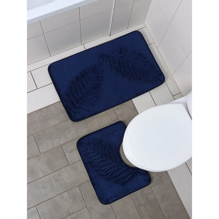 Набор ковриков для ванной и туалета Доляна «Тропики», 2 шт, 40×50, 50×80 см, цвет синий