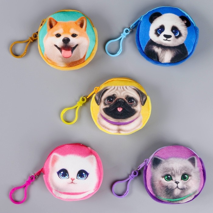 Кошелёк детский "Животные", плюшевый, цвет МИКС