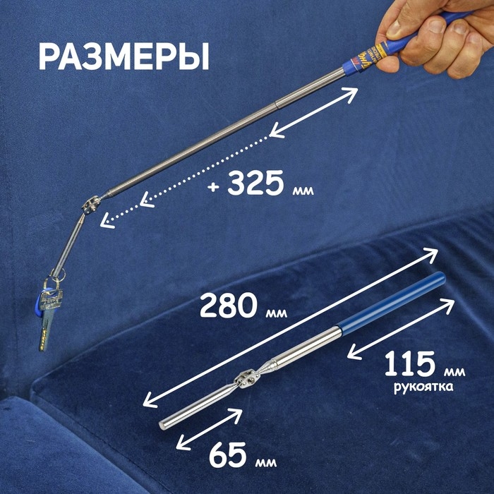 Магнит шарнирный телескопический ТУНДРА, длина изгиба 60 мм, 280 - 440 мм, до 0.5 кг