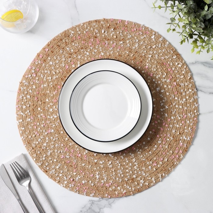 Салфетка сервировочная на стол Доляна «Серпантин», d=38 см, цвет бежевый
