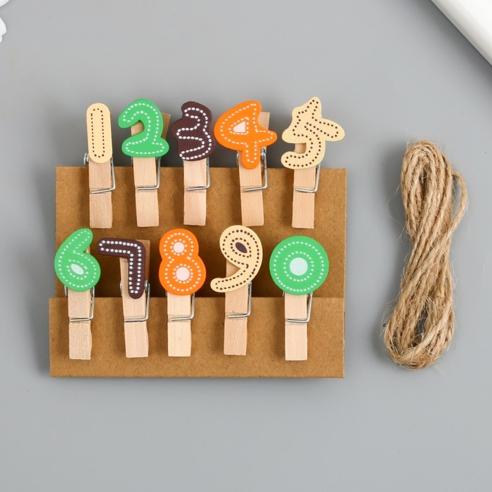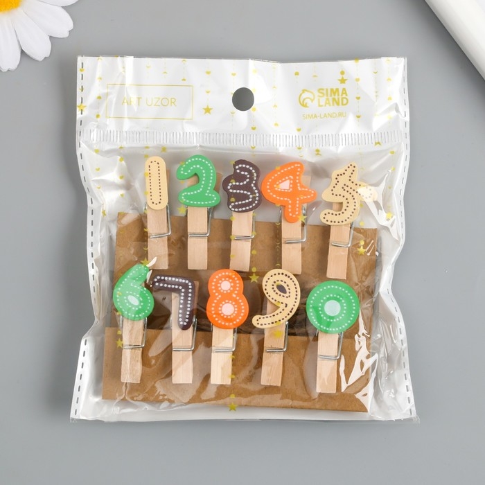 Декор для творчества дерево "Прищепка. Цифры" набор 10 шт 3,7х1,5х1,2 см