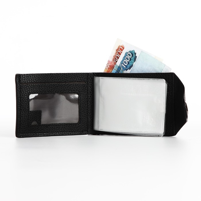 Портмоне мужское на магните, отдел для купюр, карт, монет, цвет чёрный
