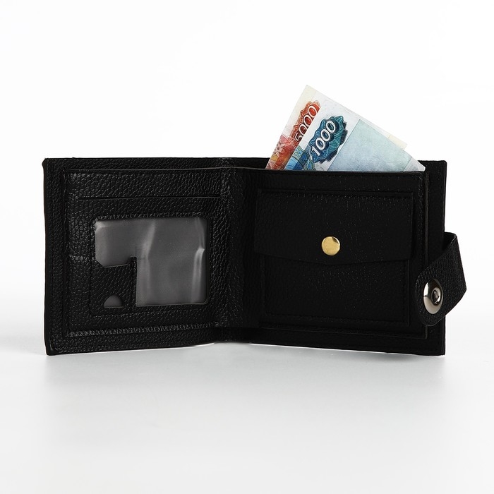 Портмоне мужское на магните, отдел для купюр, карт, монет, цвет чёрный