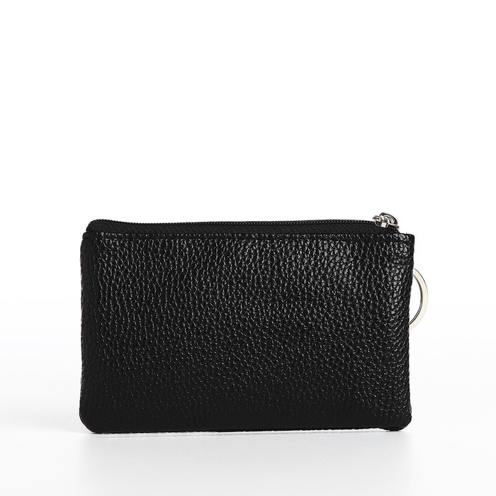 Ключница - кошелёк на молнии, длина 12 см, кольцо, цвет чёрный