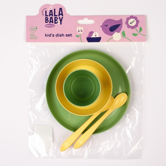 Набор детской посуды Lalababy Follow Me (тарелка, миска, стаканчик, 2 ложки), цвет зеленый