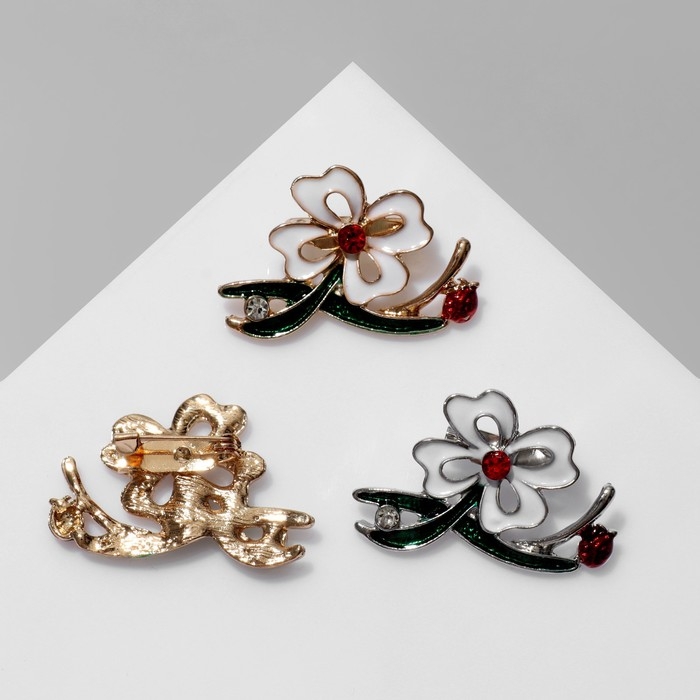 Брошь «Цветок» с двумя листьями, цвет МИКС (неделимая фасовка 12 шт., цена за шт.)