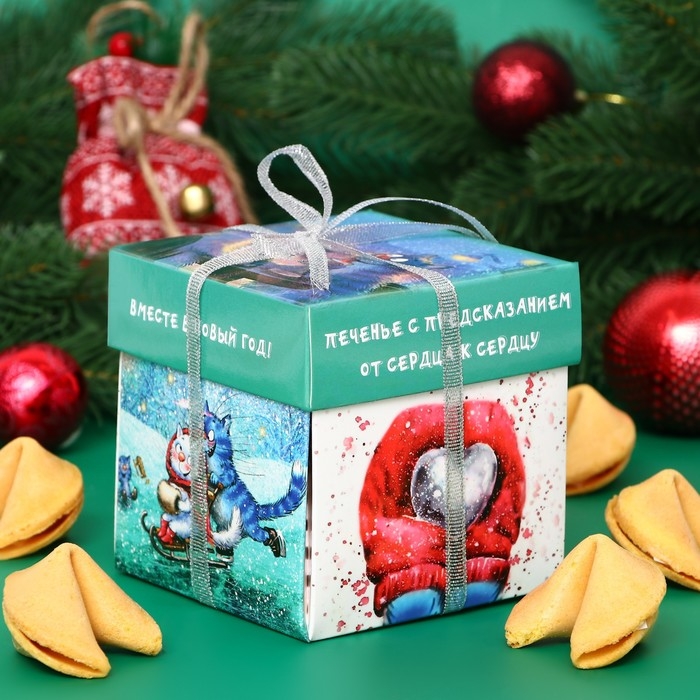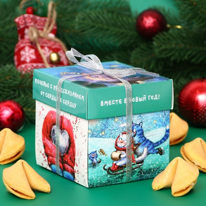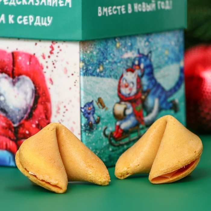 Новый год. Печенье песочное с новогодним предсказанием "Влюбленные котомаськи", 35 г, 5 штук