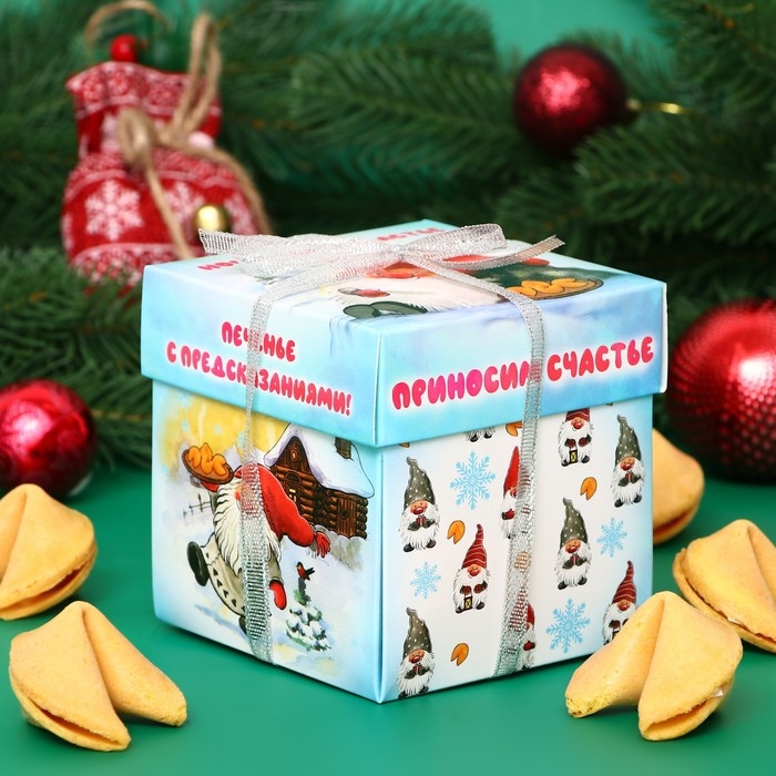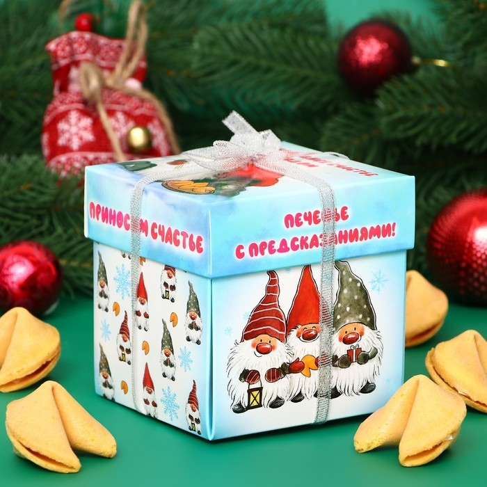 Новый год. Печенье песочное с новогодним предсказанием "Счастье гномов", 35 г, 5 штук