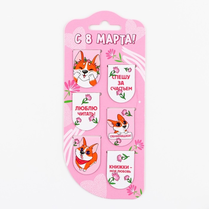 Закладки магнитные, 6 шт «Корги»