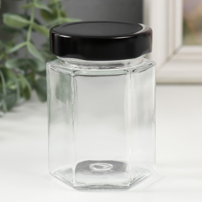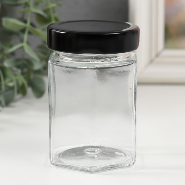 Банка для свечей стекло с крышкой "Шестигранник" прозрачная 150 мл 5,8х5,8х9 см