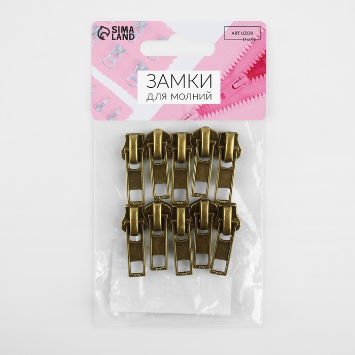 Бегунок автоматический для металлической молнии, №5, 10 шт, цвет антик