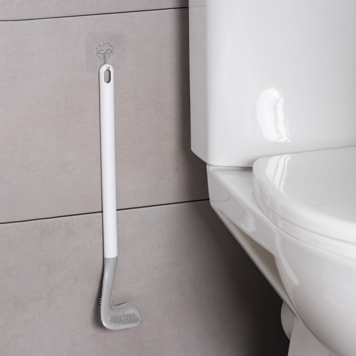 Ёршик для унитаза Доляна, силиконовый, 7×4×39 см, цвет серый