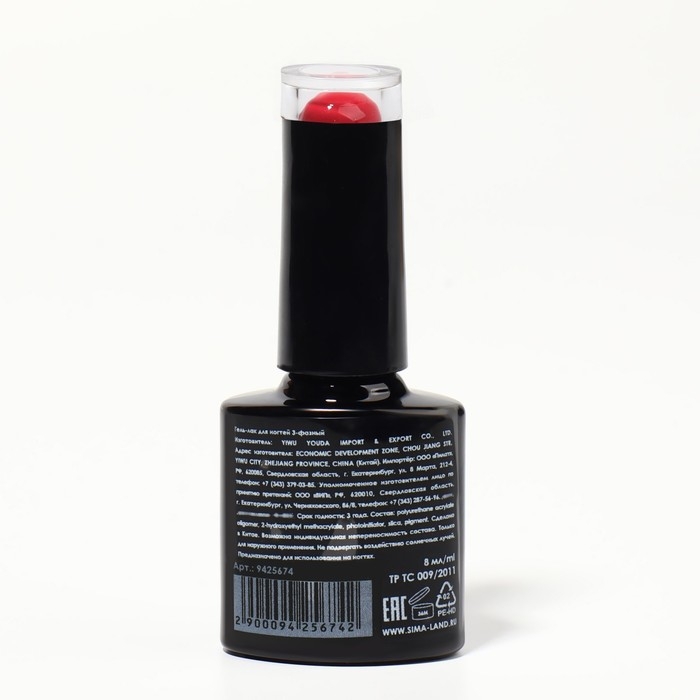 Гель лак для ногтей «RED BOOM», 3-х фазный, 8 мл, LED/UV, цвет (86)