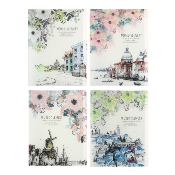 Папка формат А4, с 60 прозрачными файлами "Город", МИКС
