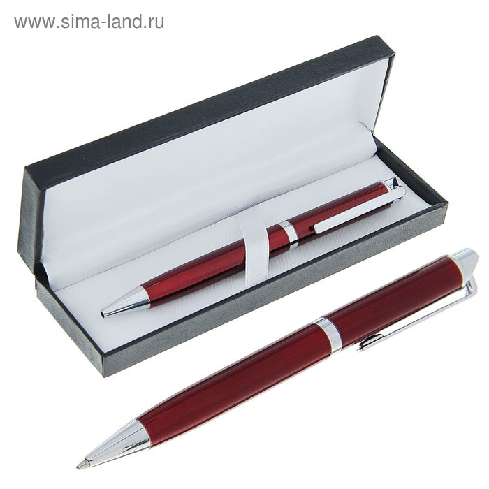 Ручка подарочная, шариковая "Эспрессо" в кожзам футляре, поворотная, бордовый/серебристый
