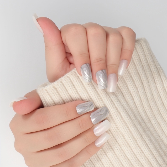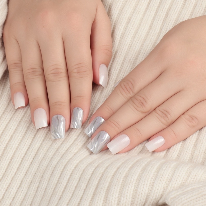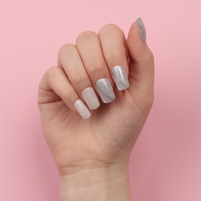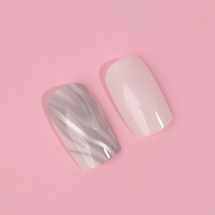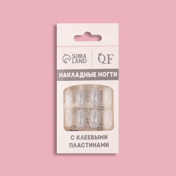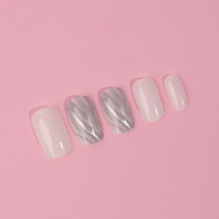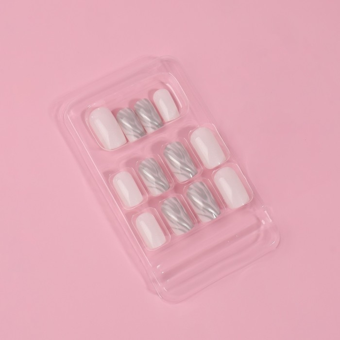 Накладные ногти «Zebra», 24 шт, с клеевыми пластинами, форма мягкий квадрат, цвет белый/серебристый