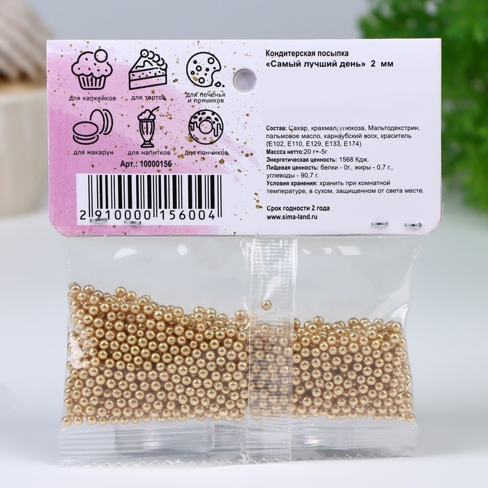 Кондитерская посыпка "Самый лучший день", 2 мм, золотая , 20 г