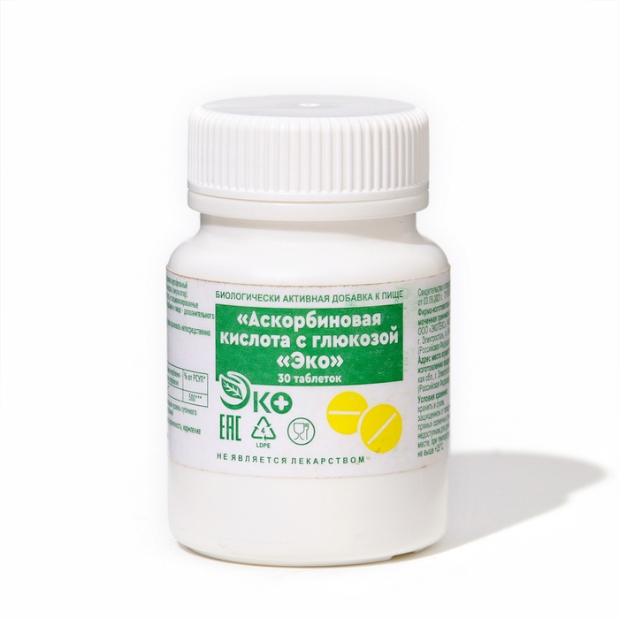 Аскорбиновая кислота с глюкозой Экотекс, 30 таблеток по 0,1 г