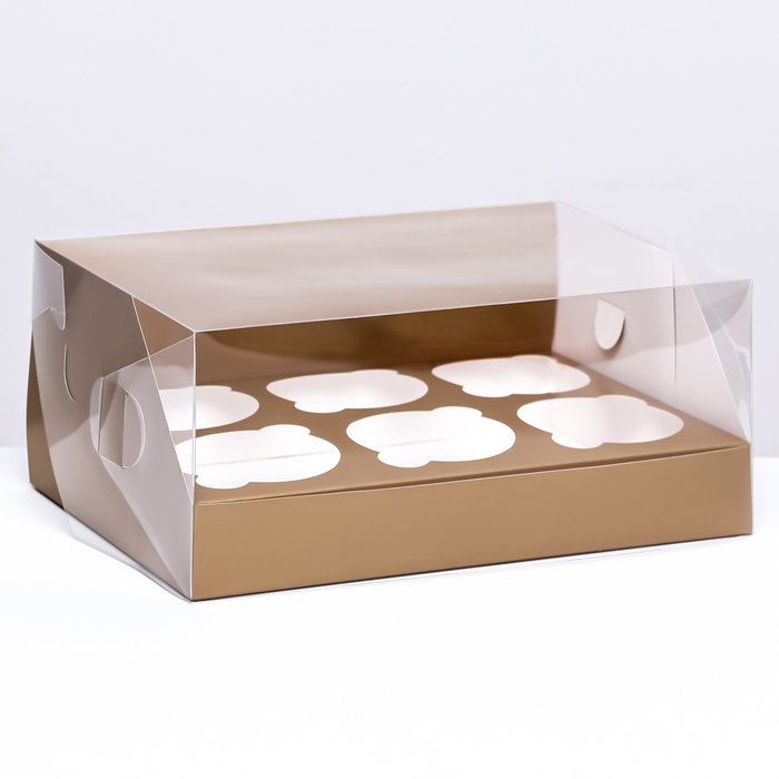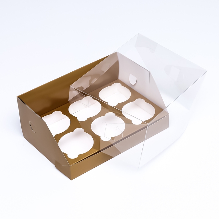 Коробка для 6 капкейков 23,5 х 16 х 10 , Золотая