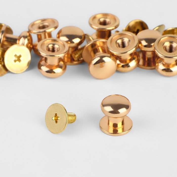 В наборе 10 штук золотого цвета. Диаметр шляпки 7,9 мм; диаметр основания 8,5 мм; высота 8,5 мм.