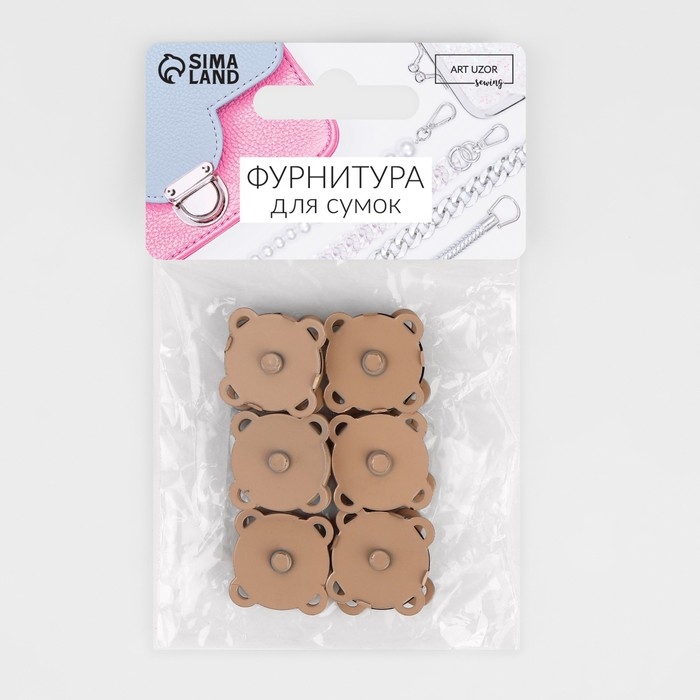 Кнопки магнитные, пришивные, d = 18 мм, 6 шт, цвет бежевый матовый