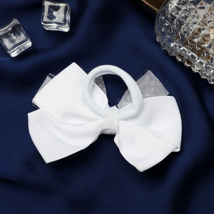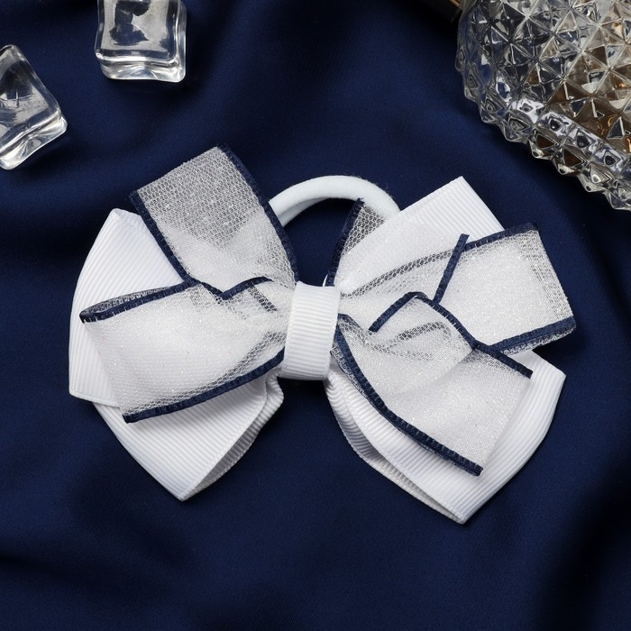 Резинка для волос бант "Школьница" синий кант двойной, 9,5 см, белый