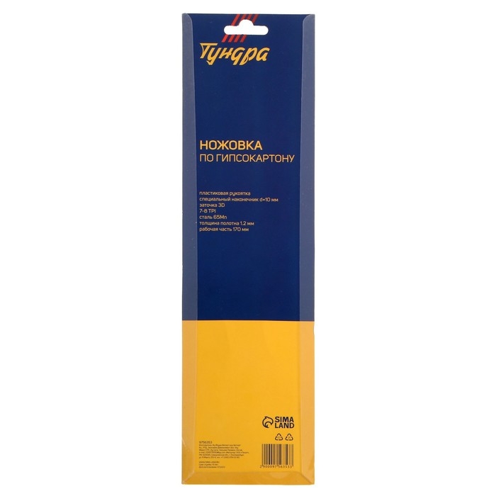 Ножовка по гипсокартону ТУНДРА, спец. наконечник d=10 мм, заточка 3D, 7-8 TPI, 170/280 мм