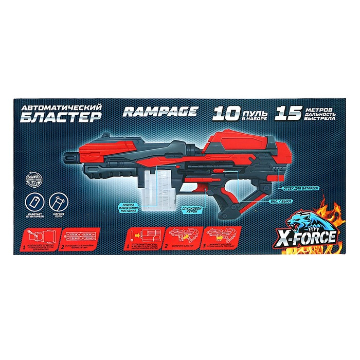 Автоматический бластер RAMPAGE поможет малышу стать абсолютным победителем захватывающего поединка! Оружие с мягкими пулями позволит устроить настоящее, но безопасное сражение. Все патроны обладают хорошей скоростью и точностью удара, но не причиняют вреда.