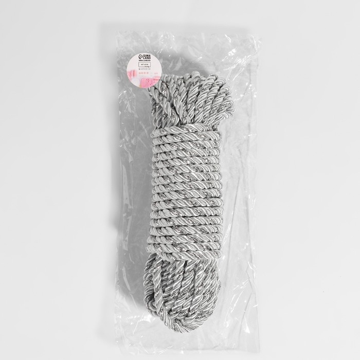 Шнур витой, d = 5 мм, 9 ± 1 м, цвет серебряный