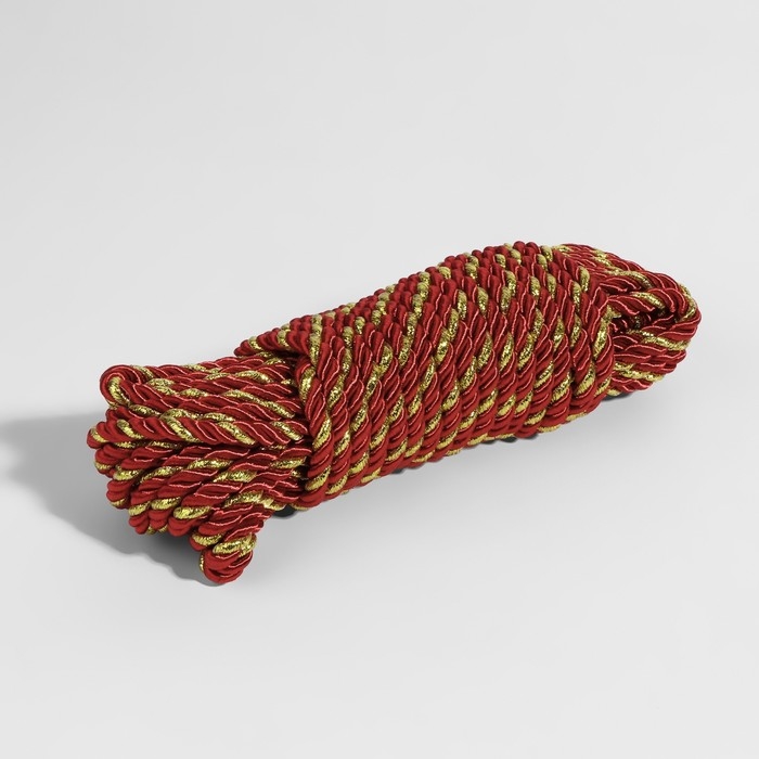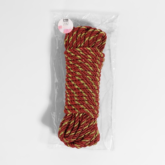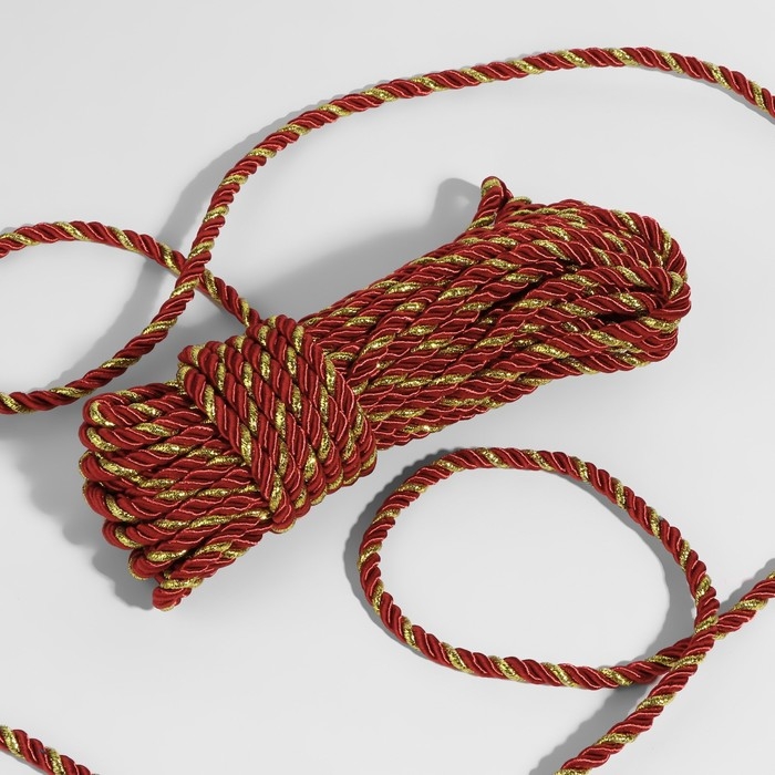 Шнур витой, d = 5 мм, 9 ± 1 м, цвет бордовый