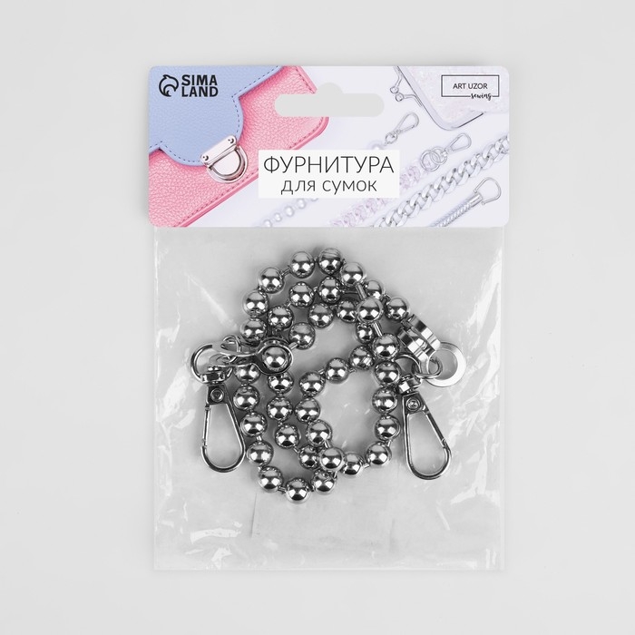 Цепочка для сумки, с карабинами, d = 8 мм, 60 см, цвет серебряный