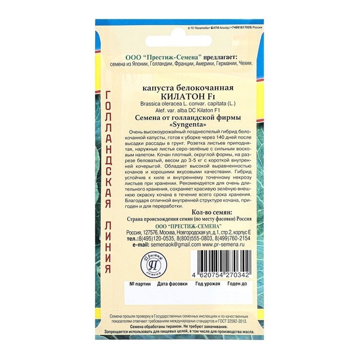 Семена Капуста "Килатон F1" белокочанная, ц/п, 10 шт.
