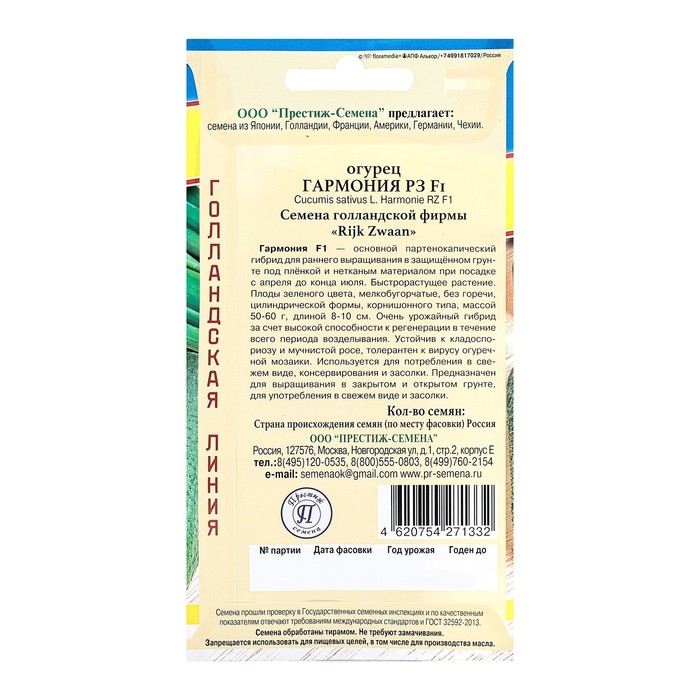 Семена Огурец "Гармония F1", ц/п, 5 шт.