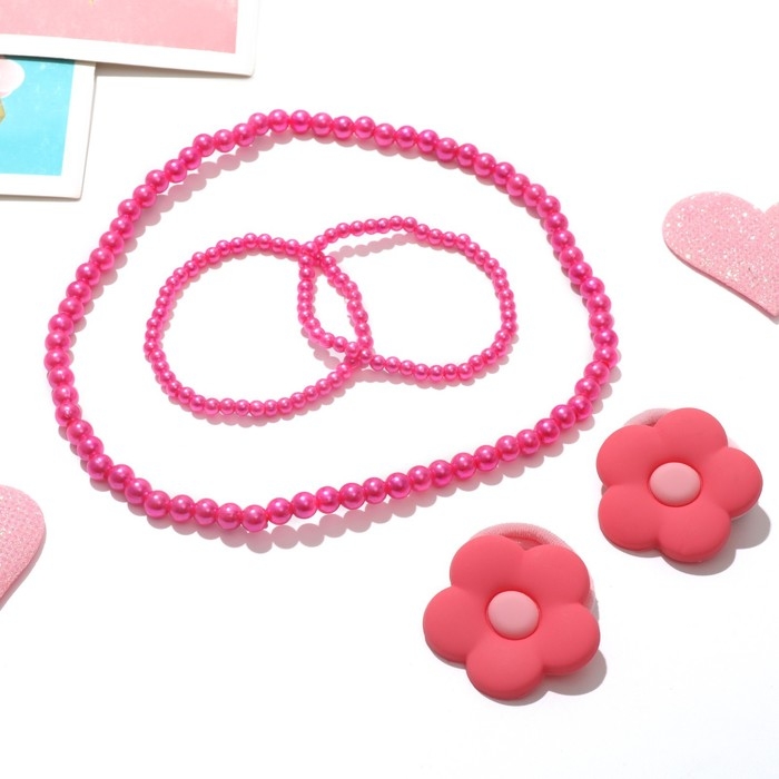 Комплект детский «Выбражулька» 4 предмета: 2 резинки, бусы, 2 браслета, цвет ярко-розовый