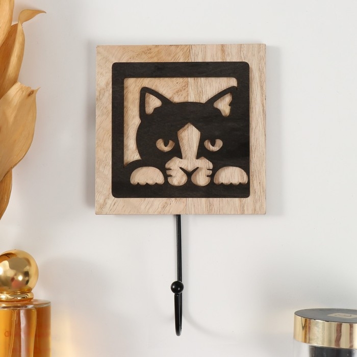Крючки декоративные дерево "Любопытный котик" 19,5х11х4,3 см