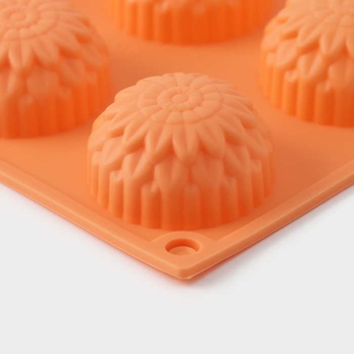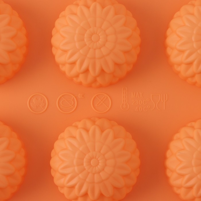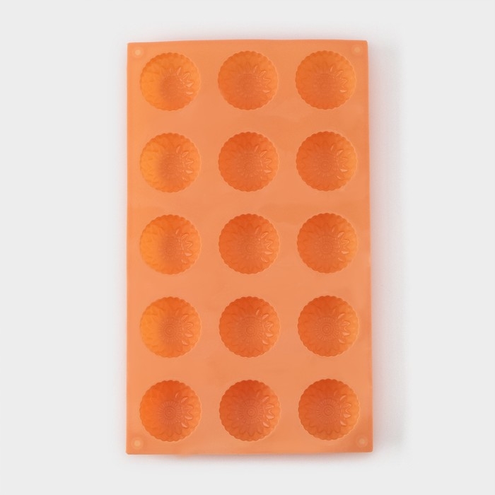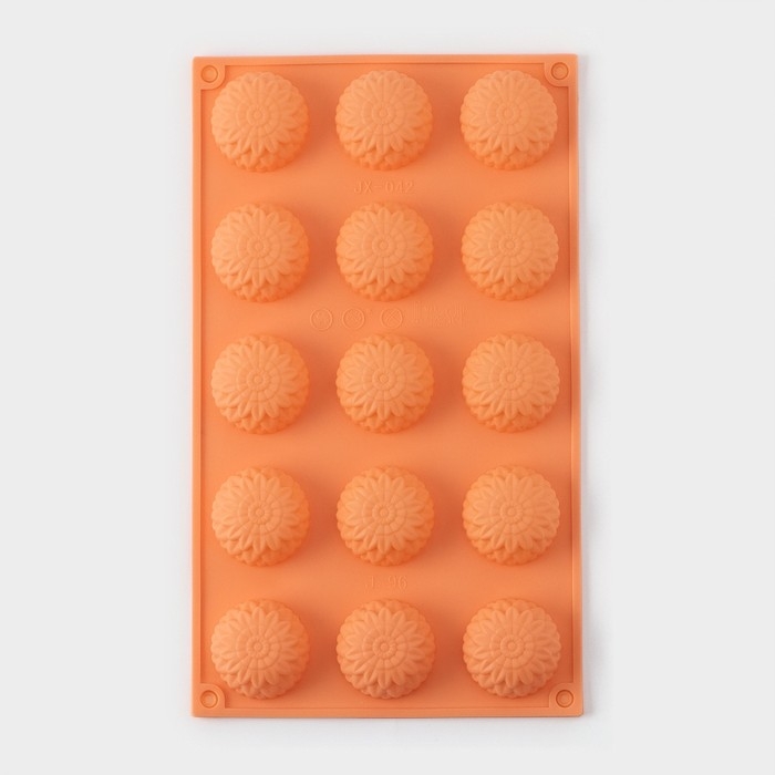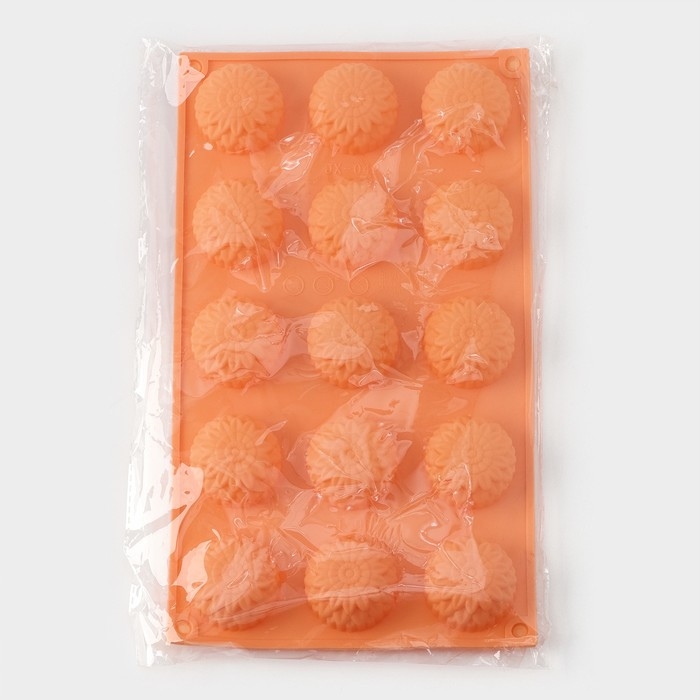Форма для конфет и шоколада «Цветы. Хризантема», силикон, 29×17×2 см, 15 ячеек, цвет оранжевый