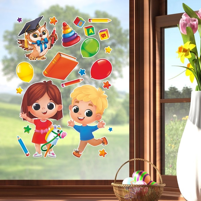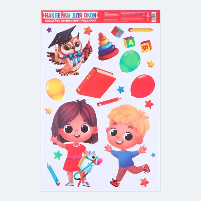 Наклейки витражные на Выпускной «Выпускной в детском саду», 33 х 50,5 см
