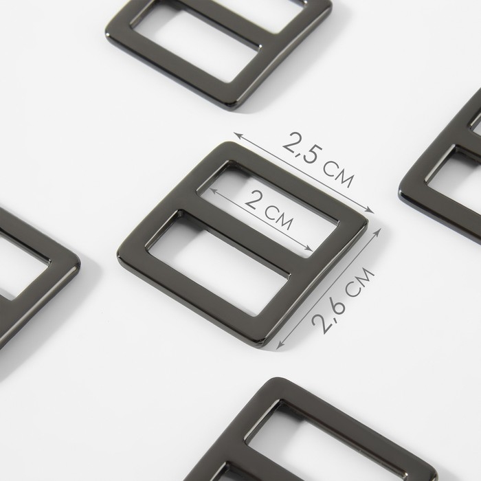 Пряжка регулирующая, двухщелевая, внутренняя ширина - 20 мм, толщина - 2,5 мм, 5 шт, цвет чёрный никель