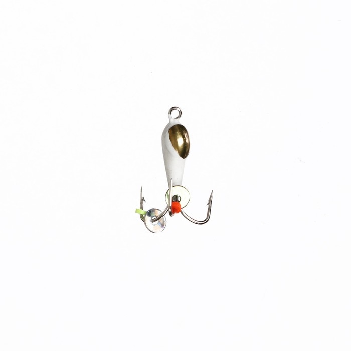 Мормышка Чертик "Белый" с золотой коронкой, вес 0.8 г, размер 3