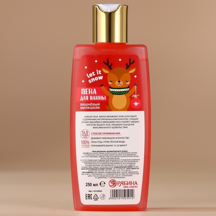 Пена для ванны, 250 мл, аромат вишнёвого милкшейка, Новый Год