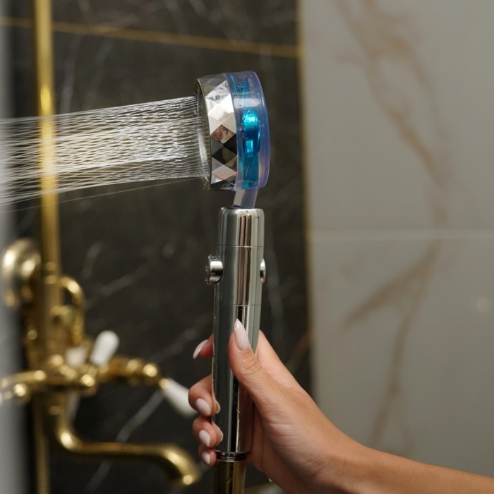 Душевая лейка ZEIN Z2349, с вентилятором, 1 режим, пластик/нержавеющая сталь, синий/хром