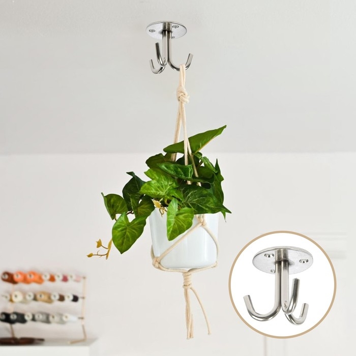 Крючок потолочный ТУНДРА, трехрожковый, нержавеющая сталь, 10 шт