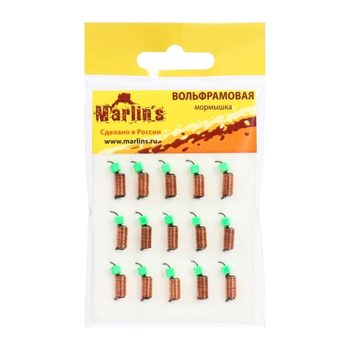 Мормышка вольфрам Marlin's Ручейник, 3 мм, 1.5 г, медь + куб зеленый УФ, 15 шт.