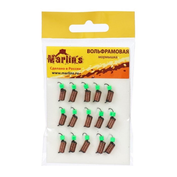 Классические безнасадочные мормышки изготовлены из вольфрамового стержня с высоким удельным весом с обмоткой медной проволокой. Различные подвесы установлены на цевье «мушиного» крючка, что гарантирует высокую подвижность повеса и исключает снятие кубика или шарика с крючка.