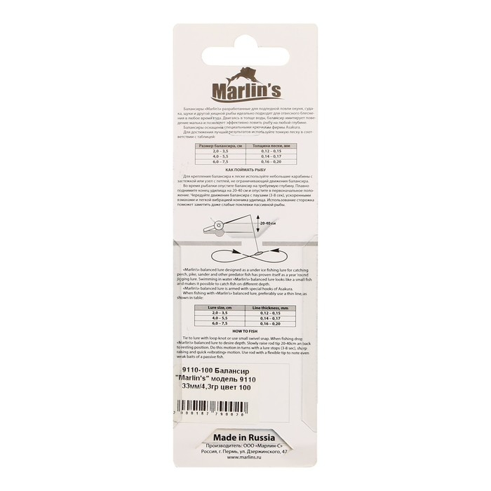 Балансир Marlin's 9110, 3.3 см, 4.3 г, цвет 100
