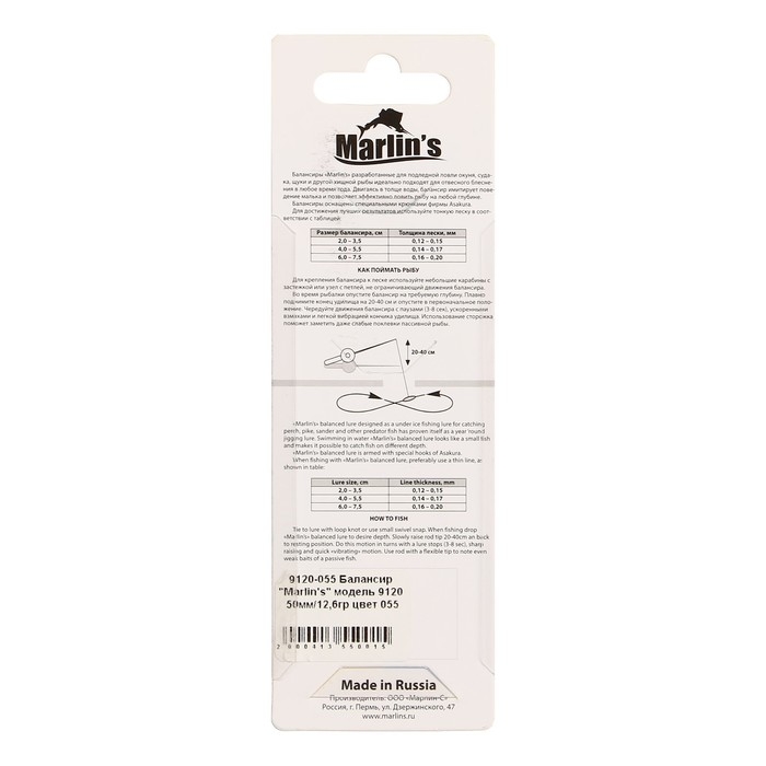 Балансир Marlin's 9120, 5 см, 12.6 г, цвет 055