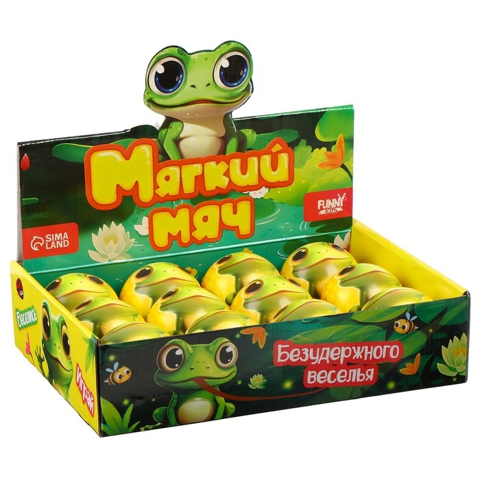 Мяч детский мягкий «Веселись», лягушка 7,6см , в шоубоксе