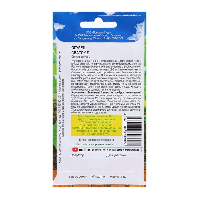Ультраранний (38-42 дня), супер надежный, партенокарпический гибрид для открытого грунта, пленочных и обогреваемых теплиц. Растение теневыносливое, сбалансированное с формированием боковых побегов и супер пучковым (3-6 шт) заложением завязи. Отличается отличной стрессоустойчивостью. Вынослив к большинству болезней огурца. В том числе к ложной и настоящей мучнистой росе и кладоспориозу. Огурчики очень привлекательные, темно-зеленые, крупнобугорчатые, однородные, хрустящие, не перерастают, транспортабельные, длиной 10–12 см, вкусные и ароматные. Генетически отсутствует горечь плодов. Хороши в любом виде-как в салатах, так и в заготовках.
