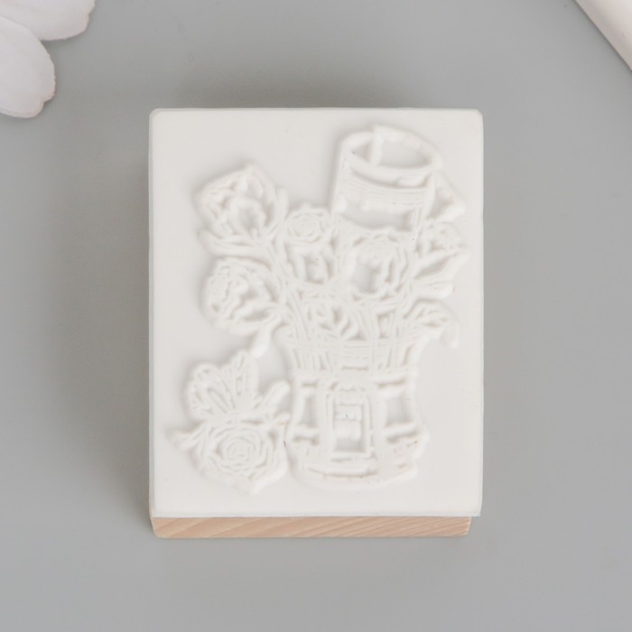 Печать дерево, резина "Цветы в ведёрке" 5х4х2,5 см
